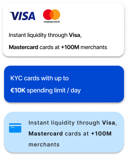 Instant liquidity through Visa, Mastercard cards at +100M merchants